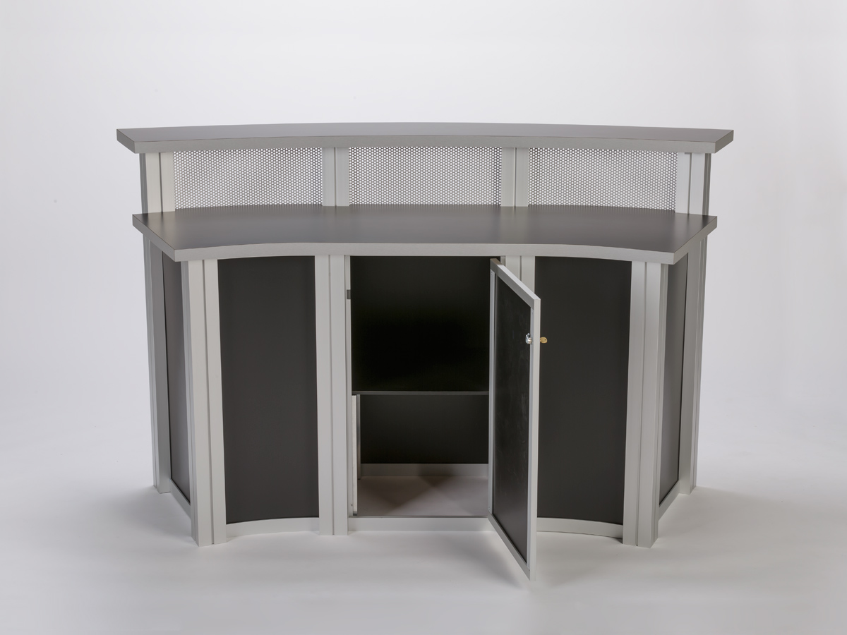 Most counters and workstations offer bold graphic opportunities with attachable or removable infill panels. And they all come equipped with locking doors for secure storage. Need more than one. We have a large inventory of the most popular counters and pedestals.