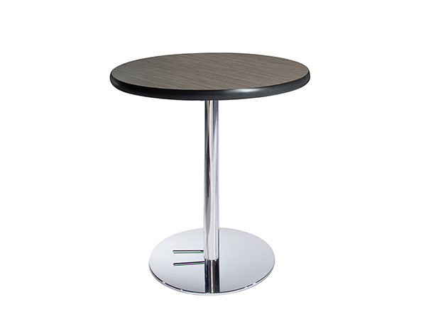 Gray Acajou Wood Laminate Top with Sleek Chrome Adjustable Base. Dims: 30" R x 29" H