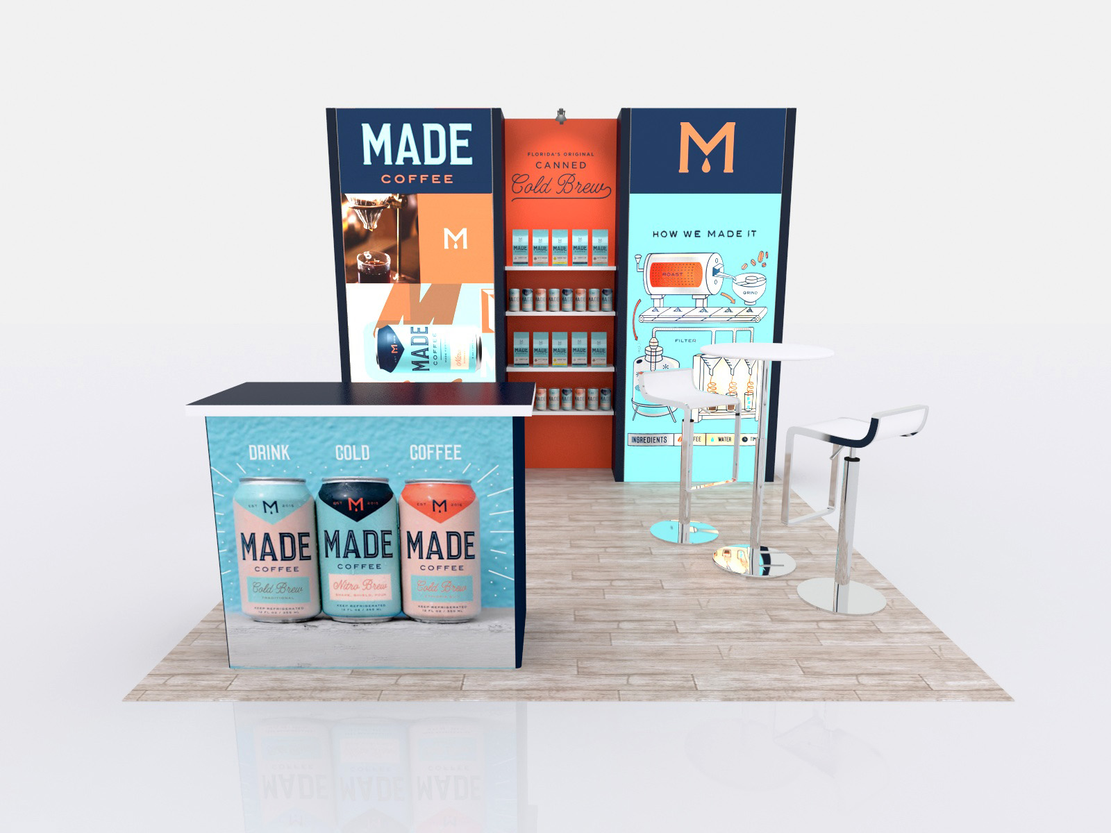 Renting an exhibit is the ideal choice in this situation. Renting is affordable, typically 30-40% of a purchase, and we have an extensive gallery of island and inline rental designs.