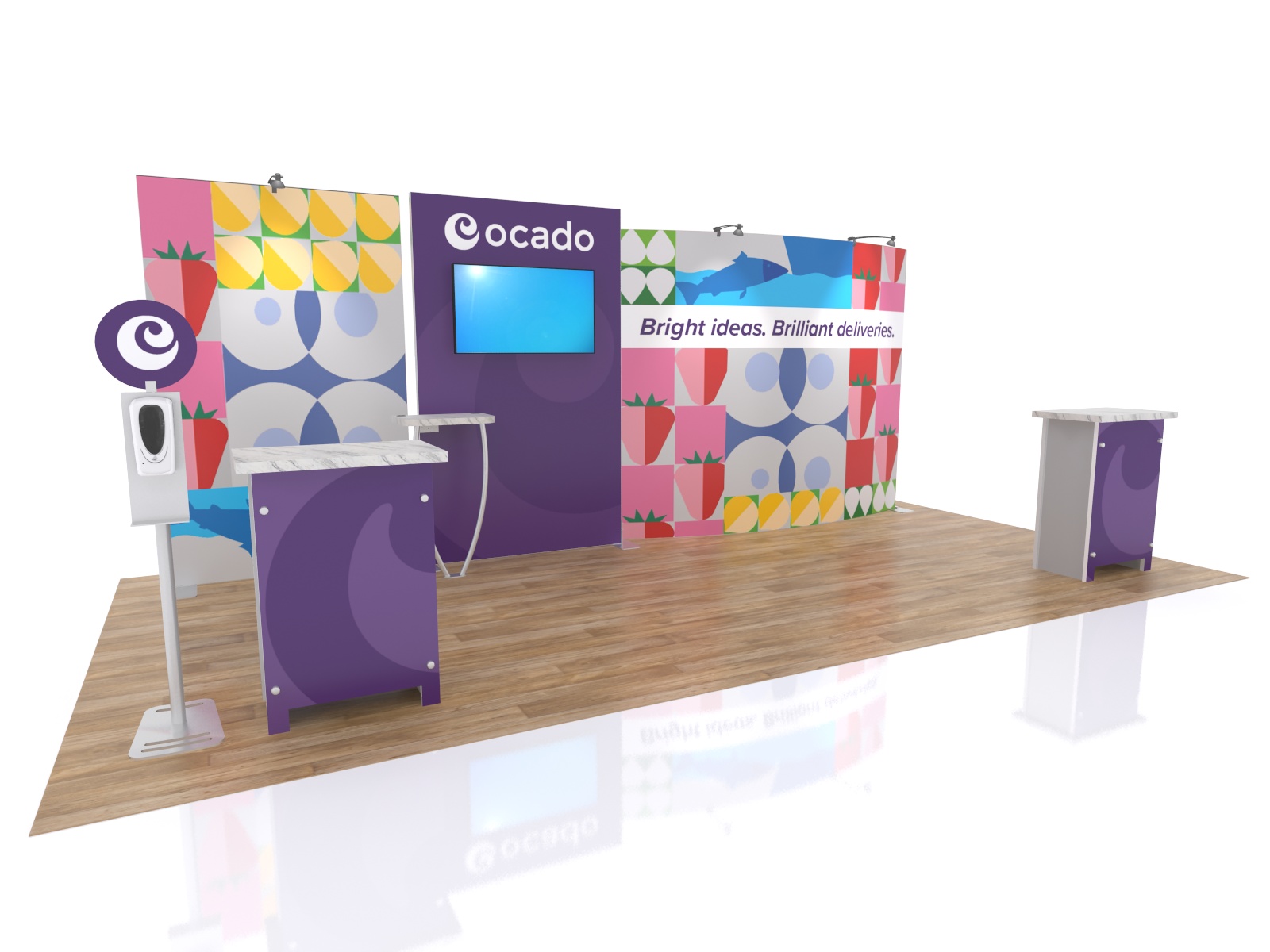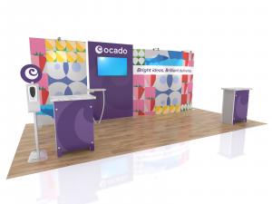 Personalize your Symphony Display with attractive counters, workstations, floating graphics, iPad clamshells, and monitor mounts. The lightweight aluminum frames are engineered for SEG dye-sublimated fabric graphics for a seamless, wrinkle-free look. Add floating graphics for additional visual layering and branding.